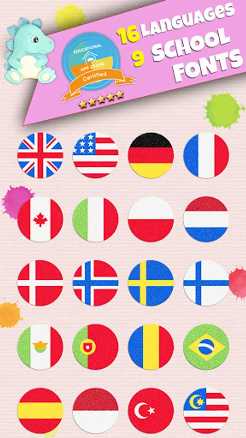 • 16 funny sticker rewards that will unlock after progression milestones are reached. Writing practice made fun.