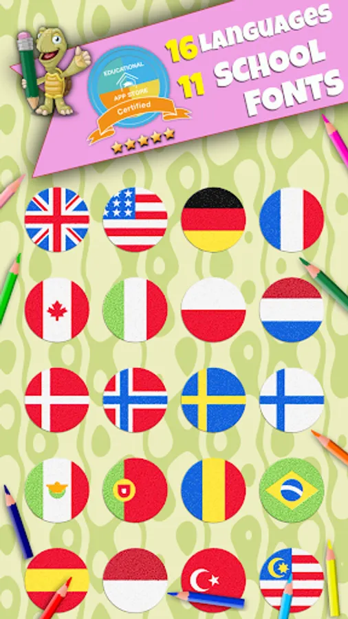• 16 funny sticker rewards that will unlock after progression milestones are reached. Writing practice made fun.