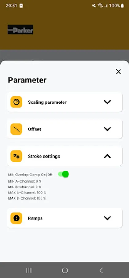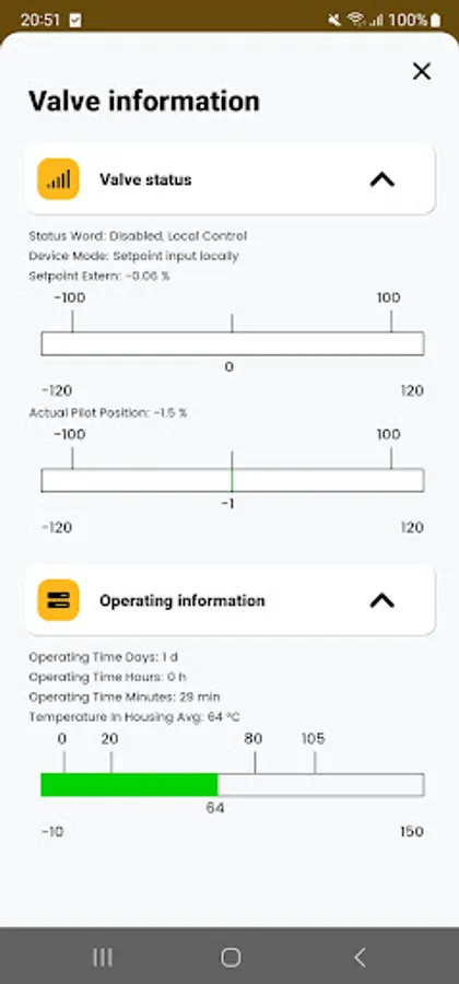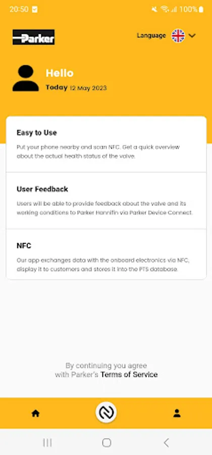 The Parker Device Connect app provides a quick overview about the current status of Parker devices equipped with an NFC interface. The diagnosis of the devices is possible when it is switched-on and without power supply.