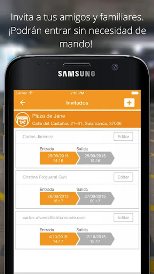 Parkingdoor from the App installed on your mobile you can invite using your email and setting up access when you give. You can remove this permission at any time immediately and automatically. Your guest need only download the app on your mobile and register with the email that has given access to enter your parking.
