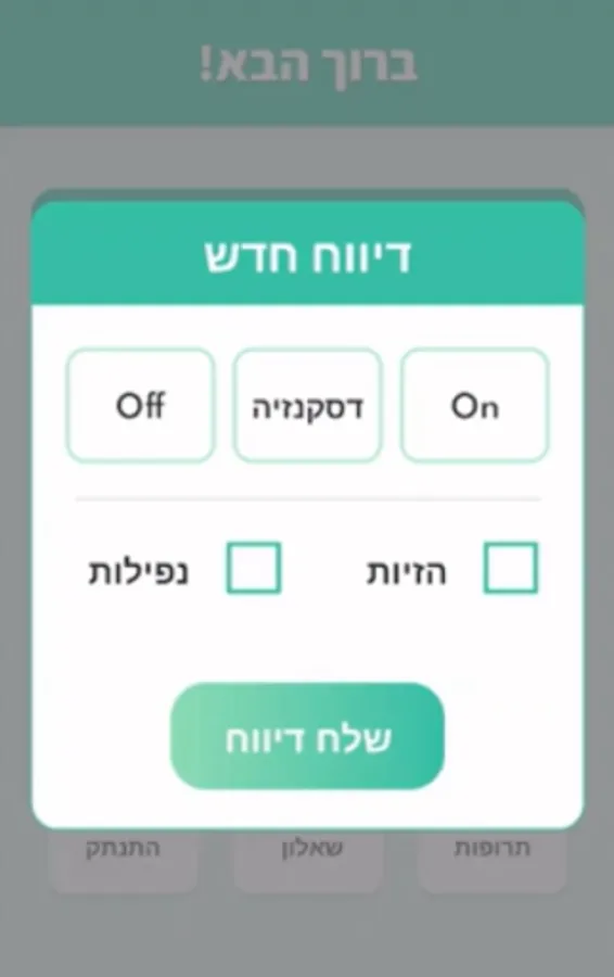 An application for reporting the condition of the patient, the patient with Parkinson's, to the doctor. At this moment the application is only intended for patients in the neurological clinic at the Rabin Medical Center (Blinson).