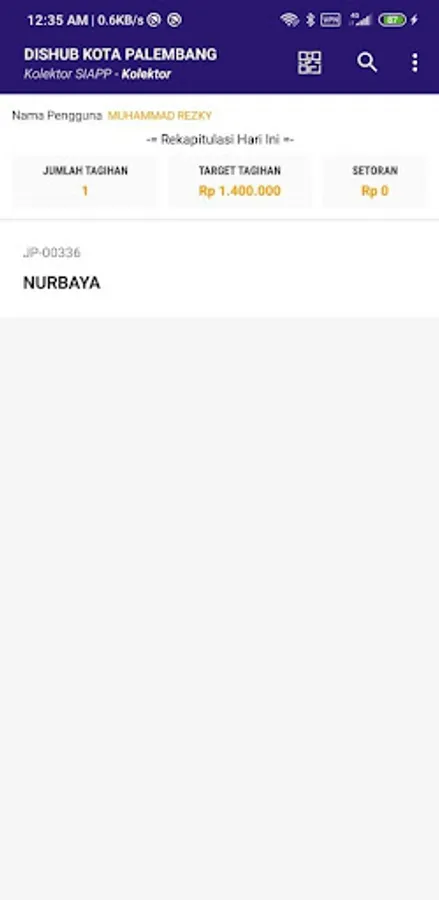 Application from the Palembang city transportation department for online reporting of Palembang city parking attendant bills