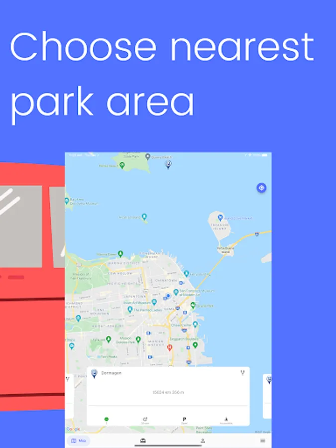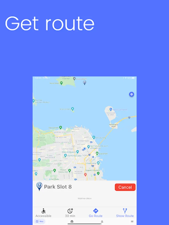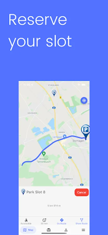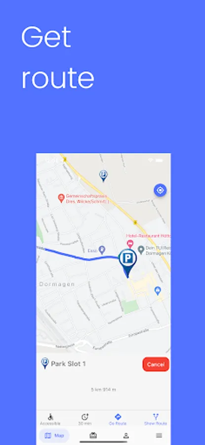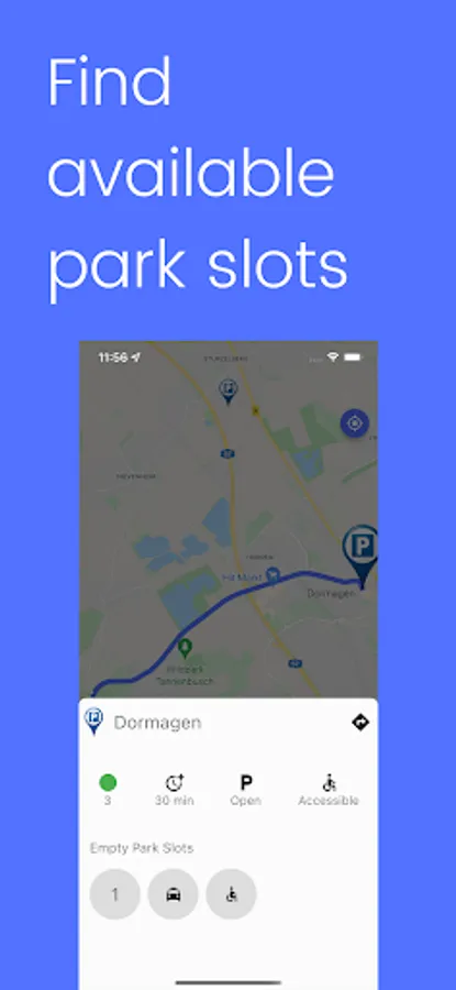 Falls die Parkplätze am Zielort besetzt sind, teilt das System den Nutzern eine Mitteilung mit, sodass die Möglichkeit besteht auf other Parkplätze in der nahgelegenen Umgebung des Zielortes auszuweichen und/oder das Ziel mit öffentlichenn.