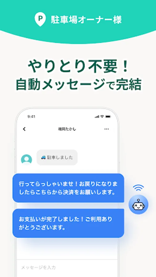 A series of exchanges from the start of parking to payment ends with only an automatically sent message.