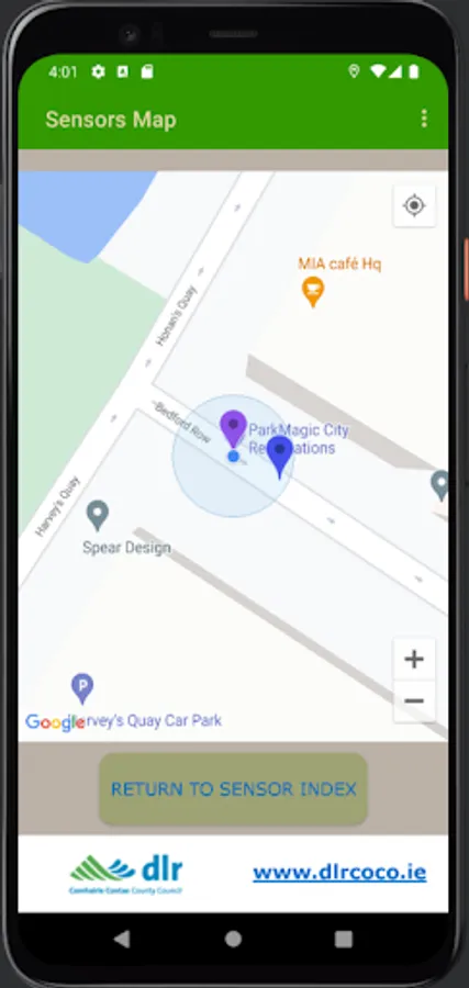 This App allows you to determine which Accessible spaces in the Dun Laoghaire Rathdown County Council area are currently free. Selecting a pin will navigate you to the selected space