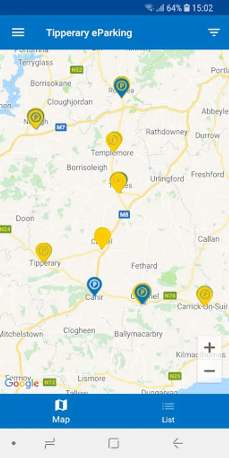 Use the Tipperary e-Parking App to pay for your parking when visiting Cahir, Carrick on Suir, Cashel, Clonmel, Nenagh, Roscrea, Templemore, Thurles and Tipperary Town.