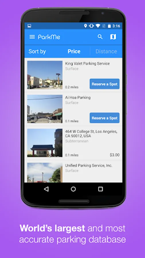 Why circle the block wasting gas and time and fraying your nerves? Whether you're looking for city parking, sports parking or special event parking, Park Me has it covered. Get parking info before you leave the house, or pull over and use the app when you're close to your destination. With prices laid out on Park Me maps, you can always easily compare parking options.