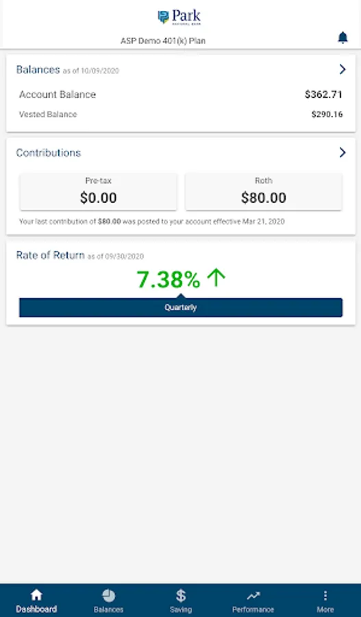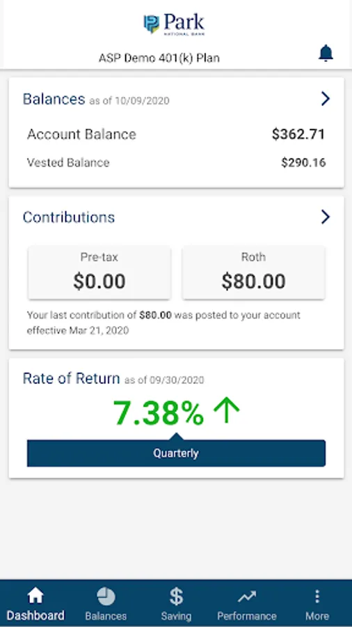 The Park National Bank retirement planning app provides direct access to your account information on your mobile device whenever you need it. Whether retirement is decades away or just around the corner, you can quickly and conveniently monitor progress with our app.