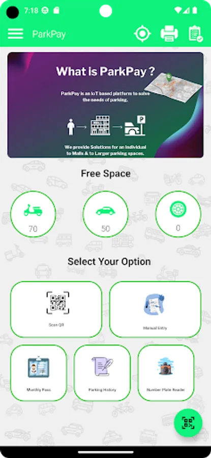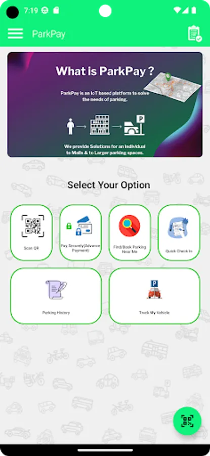 2. Quick check-in option after the first QR scan for the specific parking vendor code for each vehicle type