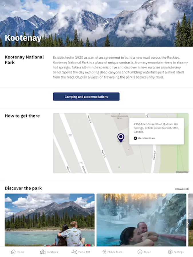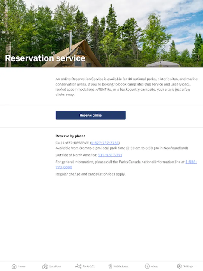 - Quick links: Looking to book a campsite, or buy a Discovery Pass? Direct links to the Parks Canada website are found throughout the app to make it easy to find the information you may be seeking.