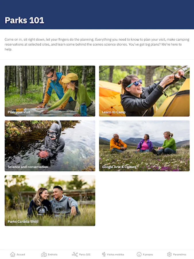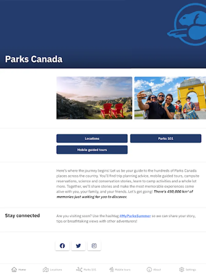 Welcome to the official Parks Canada app, your guide to planning and enhancing your next visit to the iconic destinations administered by Parks Canada. 450 000 km2 of stories at your fingertips!