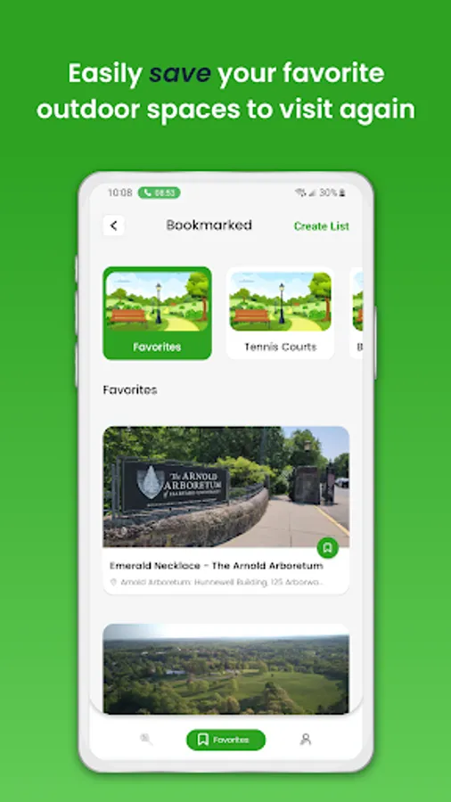 🌲 With a page dedicated page to saving your favorite parks or the places you want to go to, you'll never forget the parks that pique your interest when exploring our app. Maybe you'd like to save your favorite basketball courts or playgrounds in one place? We can make that happen by allowing you to create custom lists to organize and view your favorites the way you want!