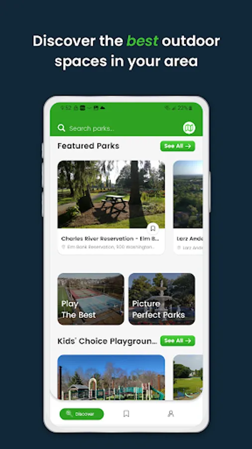 🌲 Check out our dynamic discover page with handpicked places for you to explore. Quickly find the best parks in your area with categories like "Featured Parks", "Play the Best", "Picture Perfect Parks", "Our Favorite Hikes", and more. Coming across amazing outdoor spaces nearby you didn't know existed will happen and with rotating seasonal categories like "Summertime Fun" and "Winter Wonderlands", finding places perfect for the season without searching is simple and fun!