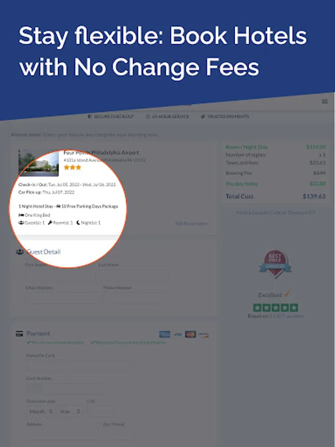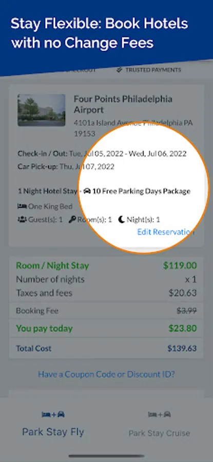 Complete your booking in less than 30 seconds- Earn Dollar+ points on all your purchasesYour trip companion, no matter the device:- View upcoming trip details, hotel address information and get maps for directions- Receive alerts for flight delays, hotel check-out times and more- Share itineraries with family and friends via email or text message- Get inspired with our curated tablet travel collectionsDownload the PSH App for hotels and parking. Save on park stay fly deals today!*Savings will vary based on origin/destination, length of trip, stay dates and selected travel supplier(s).