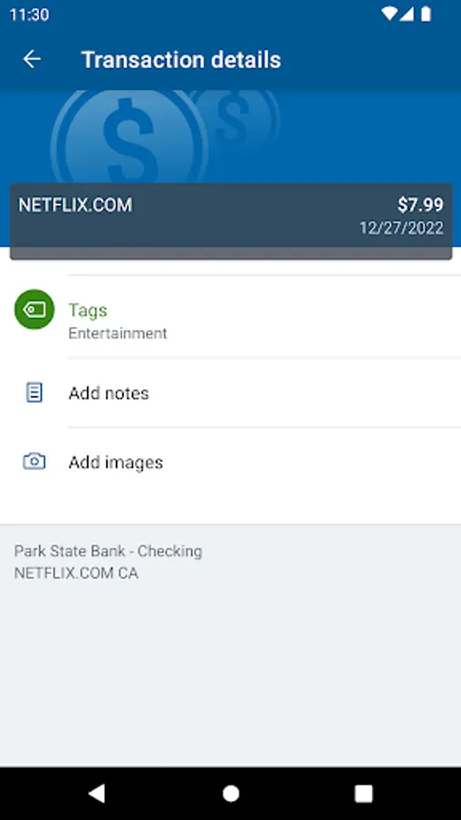 Add Tags, Notes, Images & Geo-Information: By enhancing transactions with custom tags, notes or photos of a receipt or check, you have the ability to stay organized and find exactly what you’re looking for when searching through your finances.