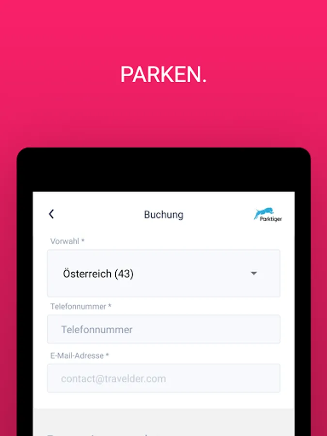 Parktiger offers you inexpensive parking spaces at Vienna Airport or in the city center of Vienna. With the Parktiger app you only have to register once and you can then book your parking space at any time with a few clicks without having to enter your data again. In addition, the app gives you a good overview of all upcoming and past bookings.