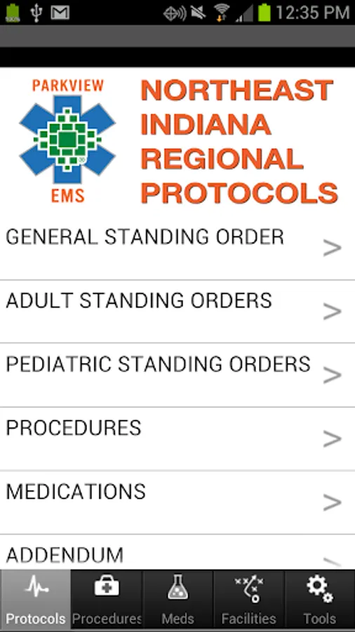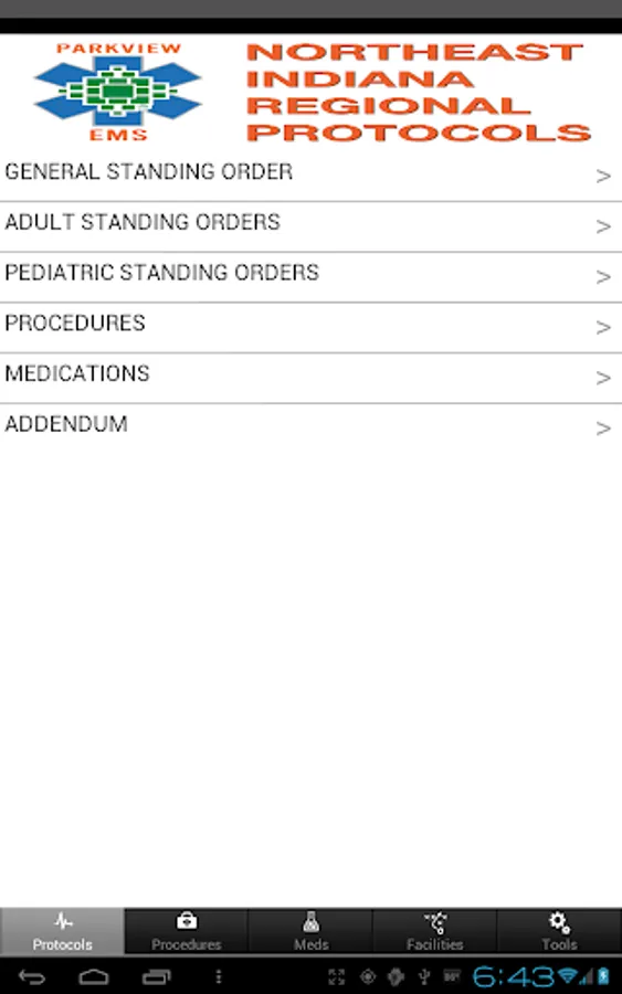Parkview EMS protocols - For use by air and ground transport crews operating under the Northeast Indiana Regional Protocols. Protocols, procedures, mapping, one-touch dialing to area hospitals, pediatric and RSI medication calculators, and more.