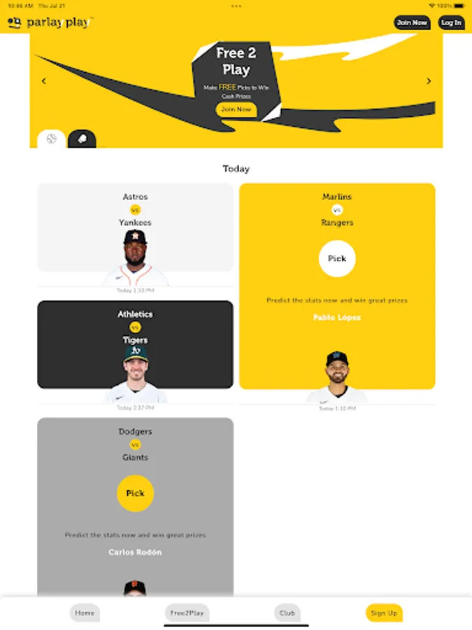 Join ParlayClub's ultimate online fantasy sports league! We offer exclusive benefits and rewards like t-shirts, payout boosts, free entries, and more. Get ready for a thrilling prize and the chance to win big with ParlayPlay!