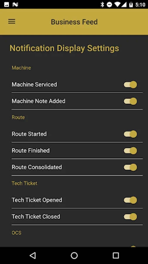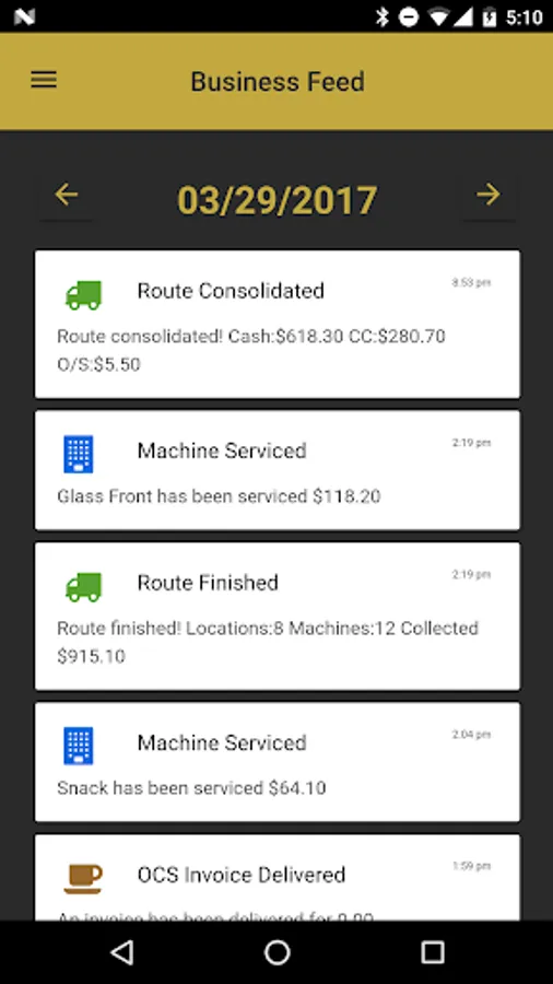 Parlevel’s Business Feed sends everything you need to know about your vending, micro market, or OCS operation directly to your mobile phone. Receive push notifications for route progress, service ticket status, customer feedback, and more!