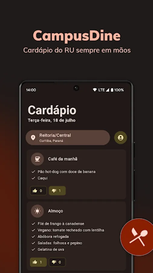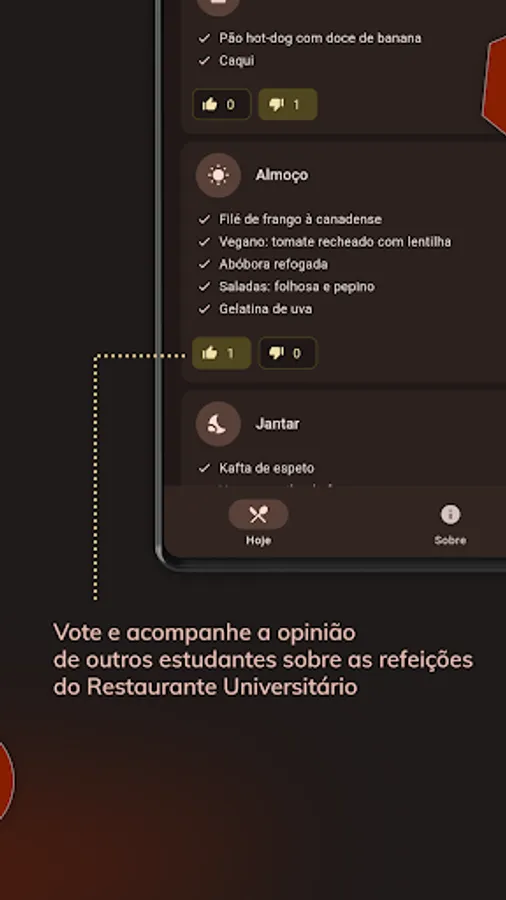 Now it is possible to vote on the menus and follow the opinion of other people about the meals of each day.