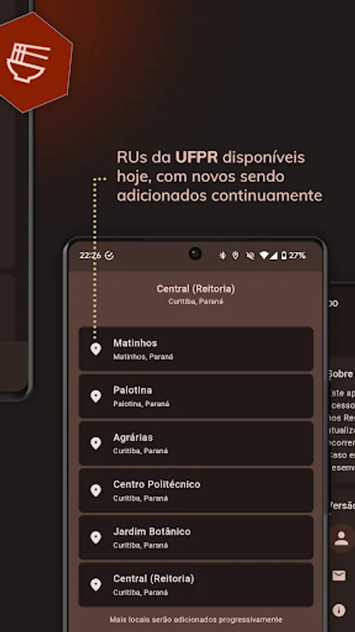 Have the UFPR University Restaurants menu always at hand, with easy and direct access from your cell phone.