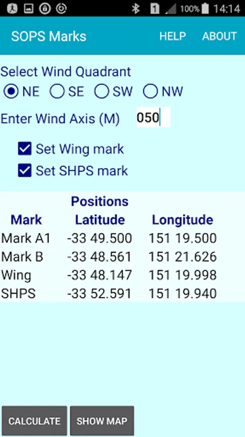 This application helps in the laying of the Sydney SOPS courses. Using the Wind quadrant and Wind axis it will generate the position for each mark including selectable Wing Marks and SHPS marks.