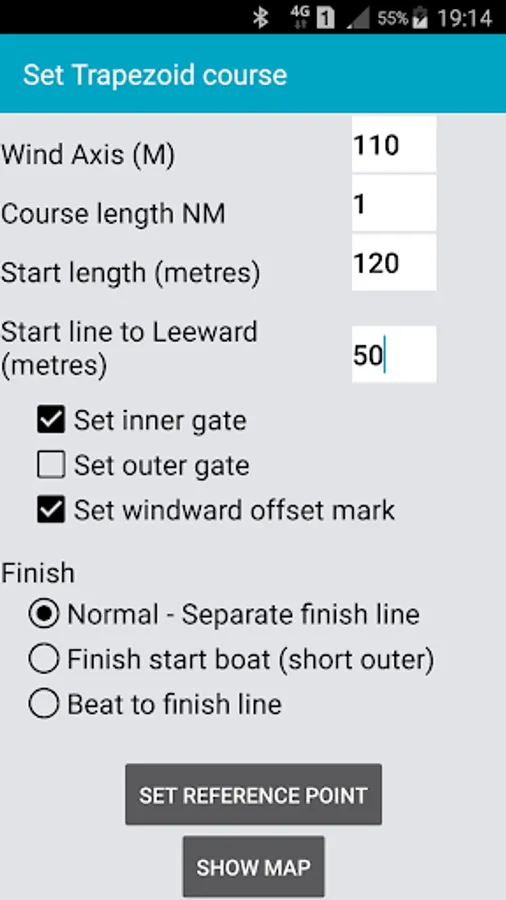 Calculate and plot the longitude and latitude of marks used in different sail racing courses. The app will provide distance and bearings to marks to allow them to be set accurately. The app supports Windward/Leeward, Triangle and Trapezoid courses as well as providing for positioning of gate and offset marks.