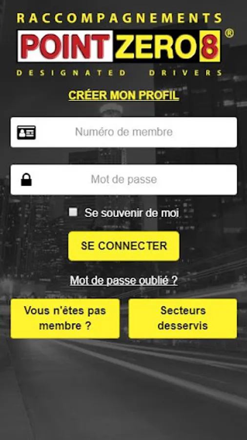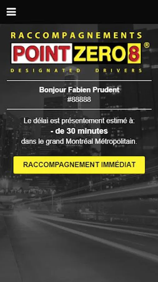 Point Zéro 8 est une entreprise familiale fondée en 1994. Notre service de raccompagnement est disponible 7 soirs sur 7 afin de vous raccompagner en sécurité dans votre véhicule. Nous offrons le service dans la grande région de Montréal, Laval, Rive-Nord et la Rive-Sud. Nous avons lancé cette application afin de sensibiliser les gens à la conduite avec les facultés affaiblies. Nous tenons à remercier nos membres pour leur support et leur confiance en nous. Merci!