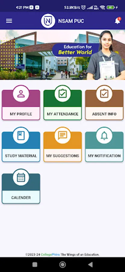 This app will help parents to get information about college and their children. Information about regular events, calendar, result, fee payment, etc. is displayed in mobile app.