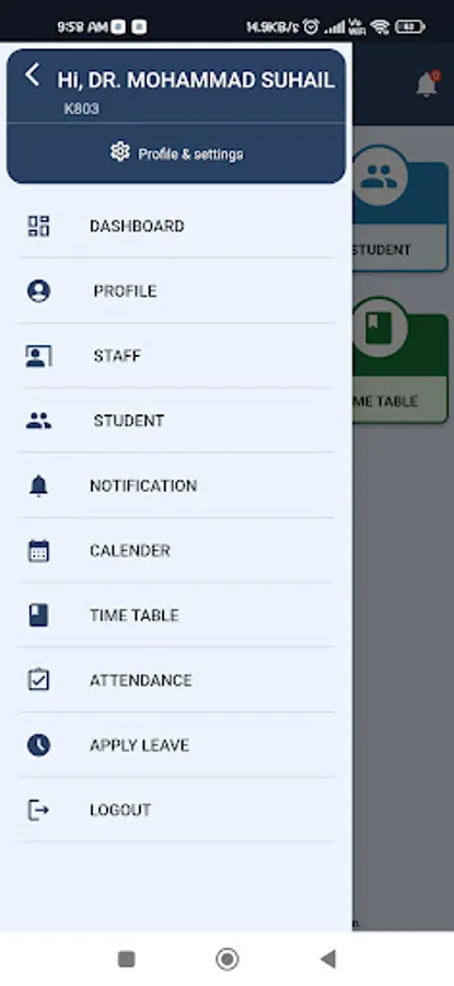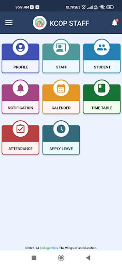 This app will help staffs to get information about college. Information about staff, students, calendar, time table, apply leave etc. is displayed in mobile app.