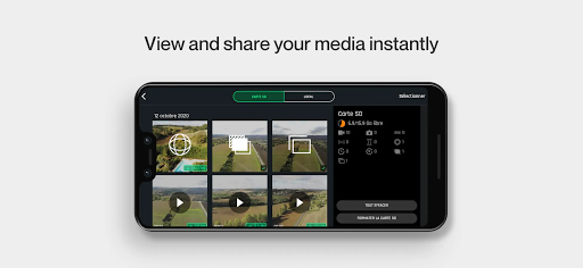 FreeFlight 6 offers a smoother and more intuitive piloting experience for ANAFI users everywhere thanks to a modernized interface. The application boasts ease of use; you can now quickly access exciting features directly from the home screen. The flying interface is adaptable to all users; beginners can have fun with dronies and automatic flight modes, while professional photographers can choose between several advanced and personalized camera settings.