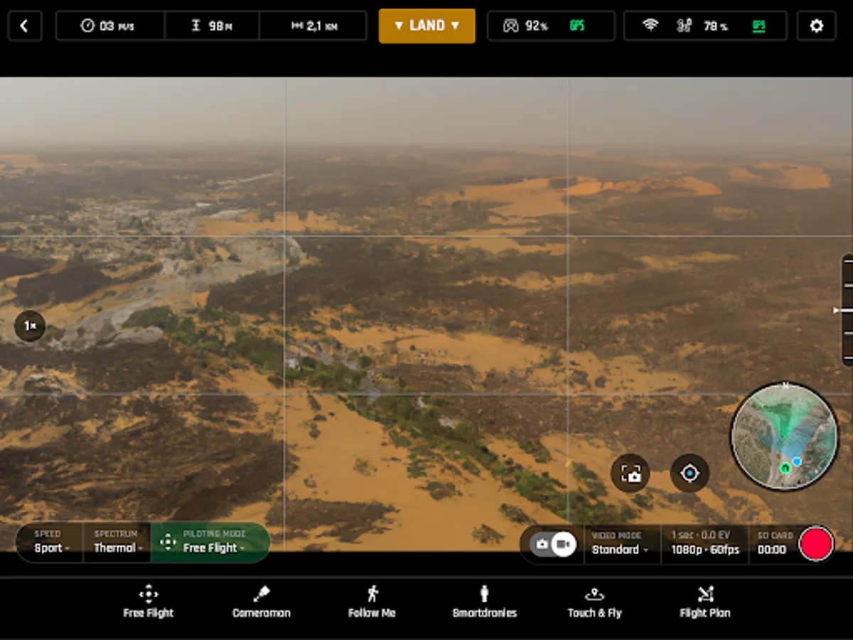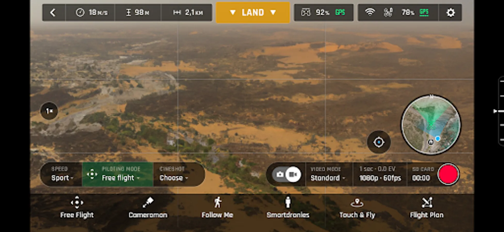 FreeFlight 6 USA is designed to offer the best piloting experience to professional ANAFI USA users. The application boasts precision of use; you can now quickly access features directly from the home screen. The flying interface is adaptable to all flight operations with several advanced and personalized camera settings.