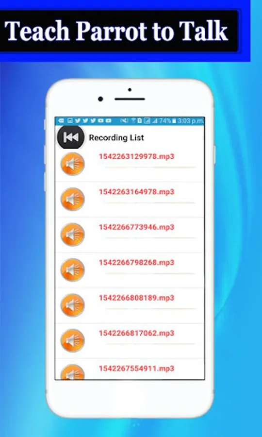 Train your parrot to speak by repeating voice or phrases automatically with parrot speech app. Enable audio looper and teach parrot to talk simply using the parrot speak. Play voice Loop and create mimic that helps your bird to speak. Train parrot to talk app contains variety of pre-recorded parrot speak lesson or you can also record your voice and create mimic with voice loop.