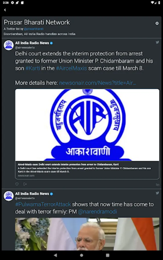 - Twitter stream from more than 250 accounts of Prasar Bharati