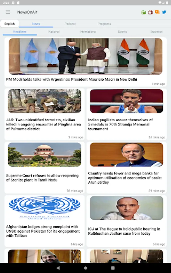 - Hourly News podcasts in English and Hindi