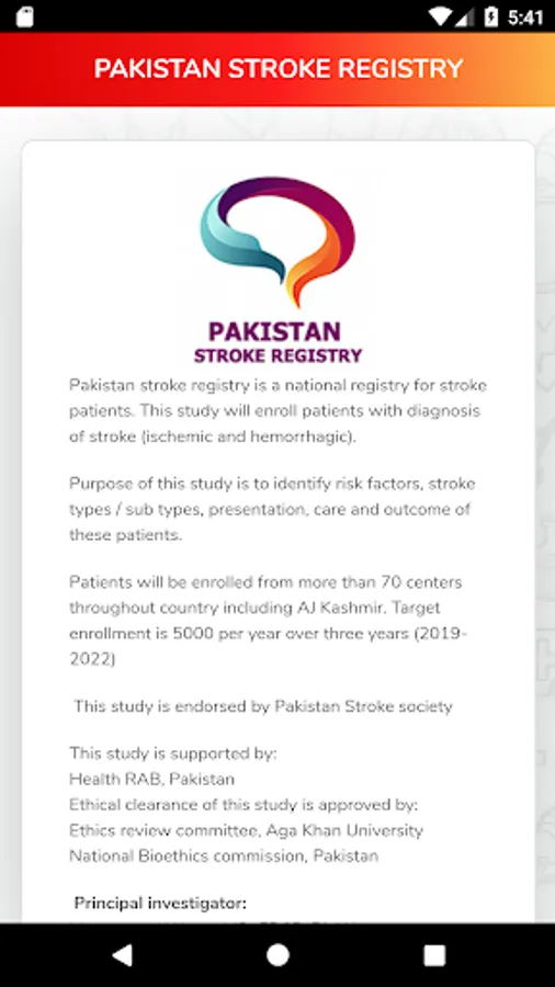 Pakistan stroke registry is a national registry for stroke patients. This study will enroll patients with diagnosis of stroke (ischemic and hemorrhagic).