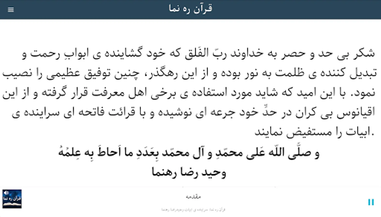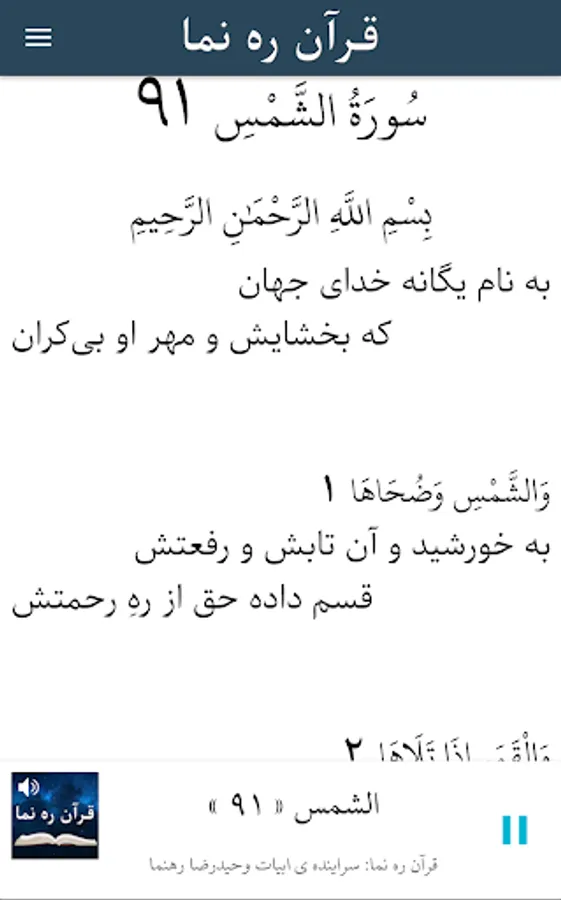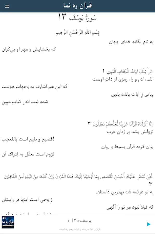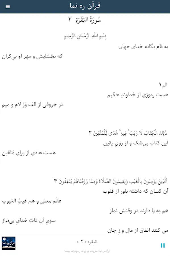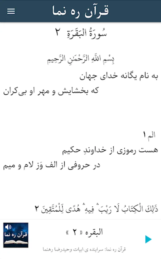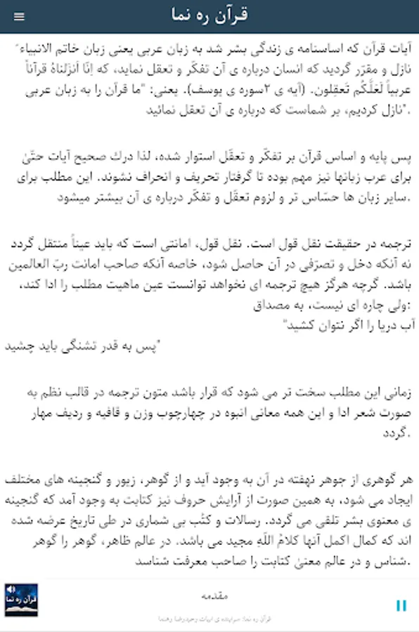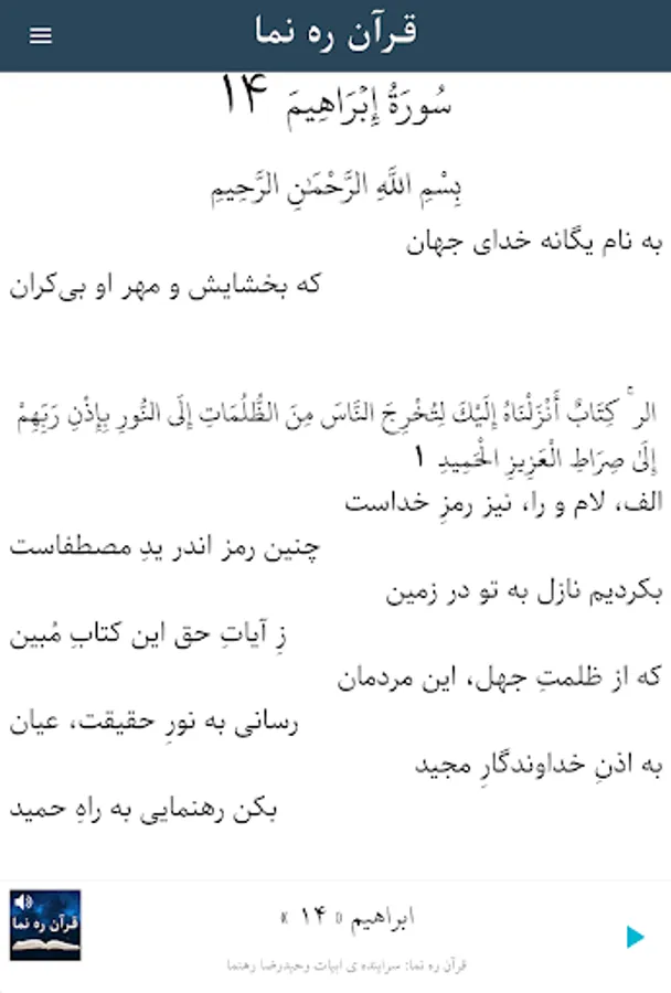 Quran Rah Nama Audiobook: Listen to and read the verse by verse poetic translation of Holy Quran by Vahid Reza Rahnama along with the Arabic recitation.