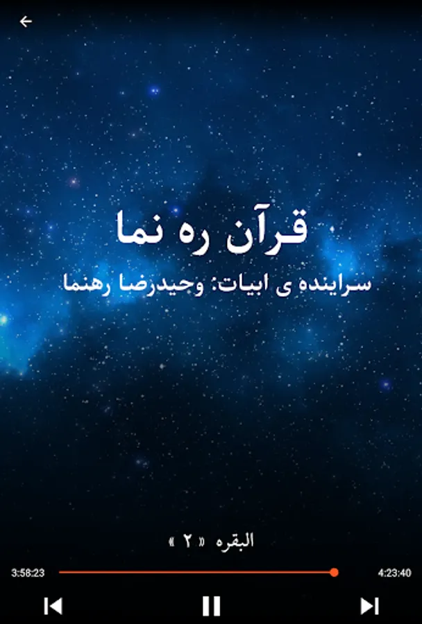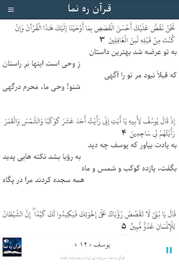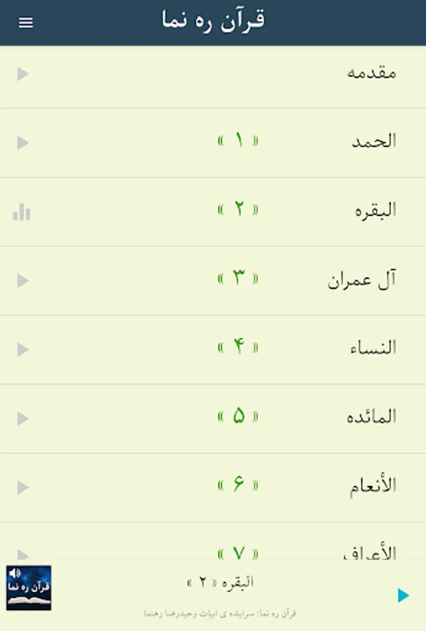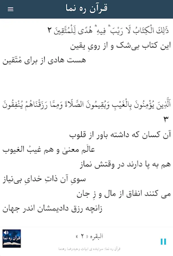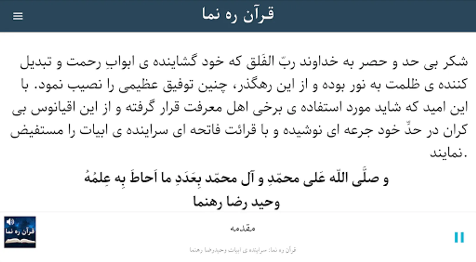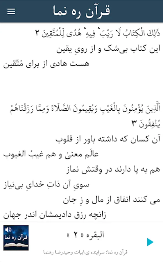 Quran Rah Nama Audiobook: Listen to and read the verse by verse poetic translation of Holy Quran by Vahid Reza Rahnama along with the Arabic recitation.