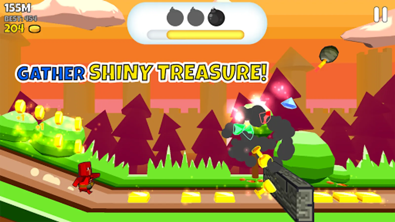 You must help him succeed using awesome power-ups and of course - running as far as you can go! You can also collect shiny treasures and unlock cool new skins.