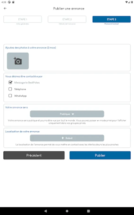 Classic classifieds sites are renowned for the scam that can prevail there: anonymity facilitates malicious operations. On PartageOn, you have the possibility to join private spaces with people you already know or with whom you have a link in real life (same school, same company, same association... etc). You therefore have a greater guarantee of security and confidentiality. You can just as well decide to switch to public mode for ads that you consider less sensitive.