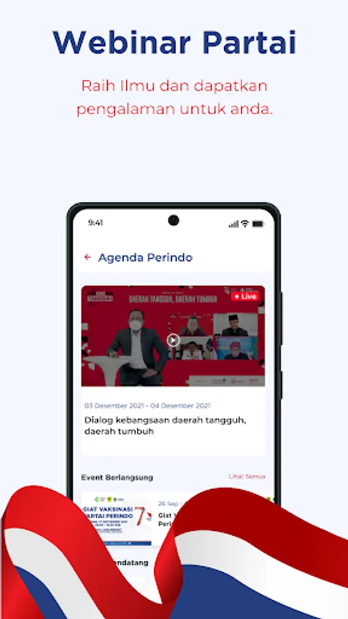 Kamu juga bisa ikuti live streaming dan webinar yang bermanfaat melalui aplikasi ini.