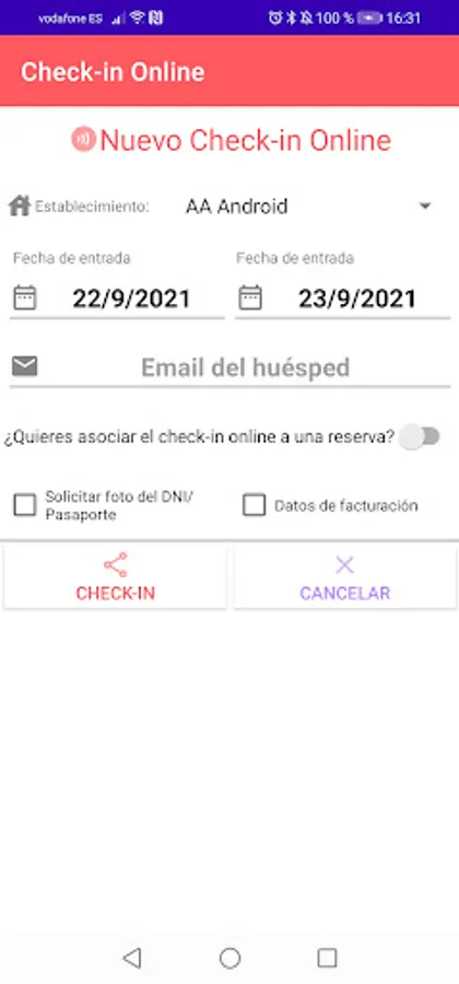 Partee_micro allows the creation of online check-in links, either by sending an email to the guest with the link or by sharing the link through WhatsApp, or other messaging applications. The creation of online check-in can be associated with a new reservation or a previously created reservation.