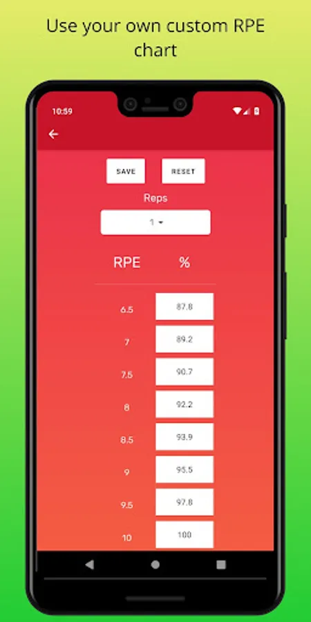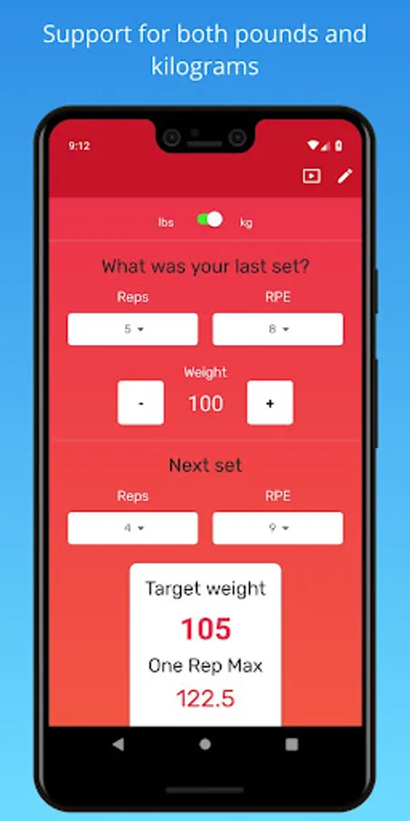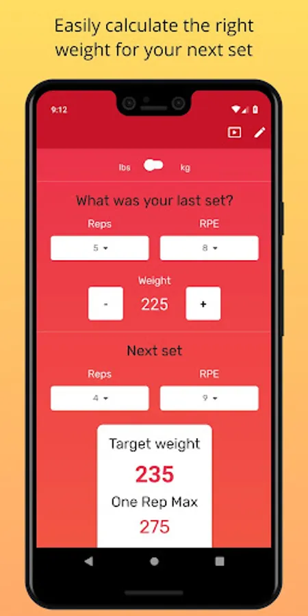 Easily calculate the weight you need on the bar for your next set. No more looking up RPE charts and punching in numbers into your calculator.