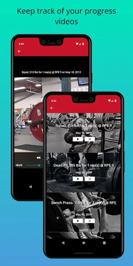 - Upload or take videos of your sets and keep track of your progress and form for the primary compound lifts