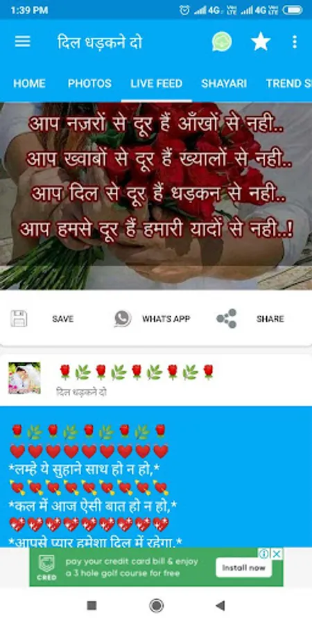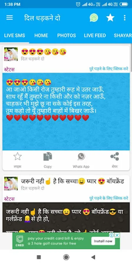 ● Love Status for WhatsApp : Share your Feelings with your Girlfriend/Boyfriend by updating a Lovely Status for them.