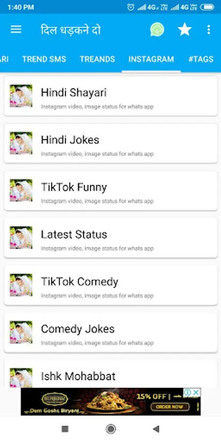 ● Funny WhatsApp Status : Laugh with your friends by sharing some Funny Status over WhatsApp or Facebook and other platforms.