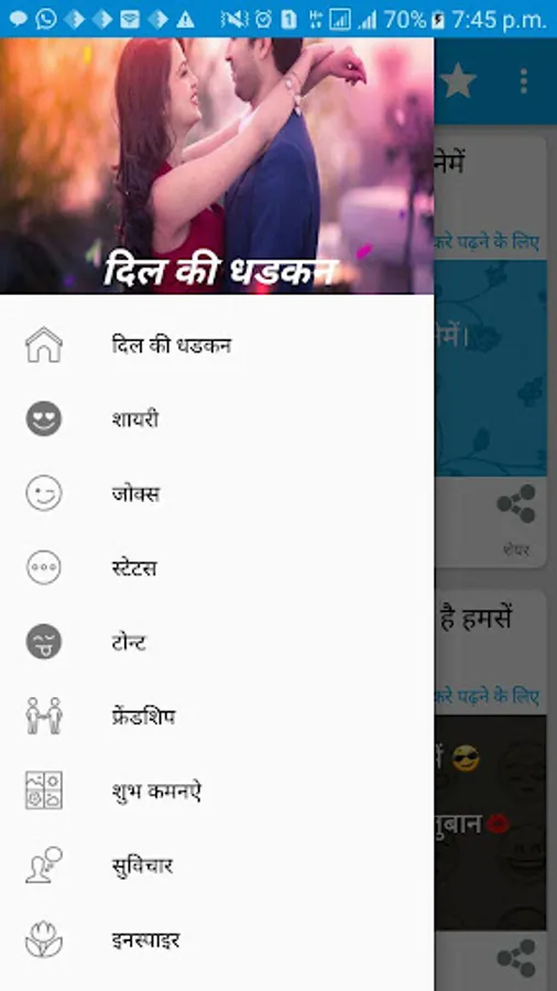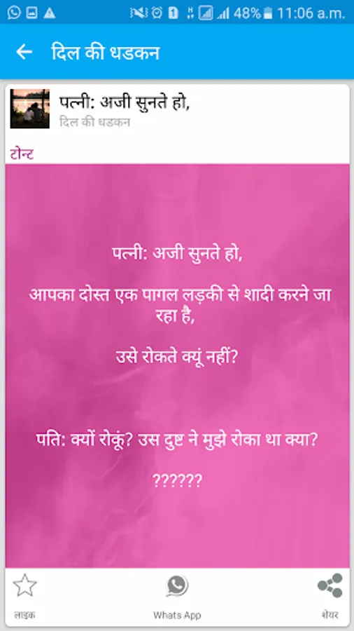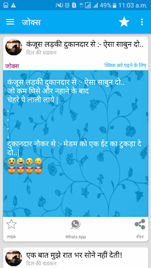 You can share easily with social media. Daily new updated jokes, shayari and status.