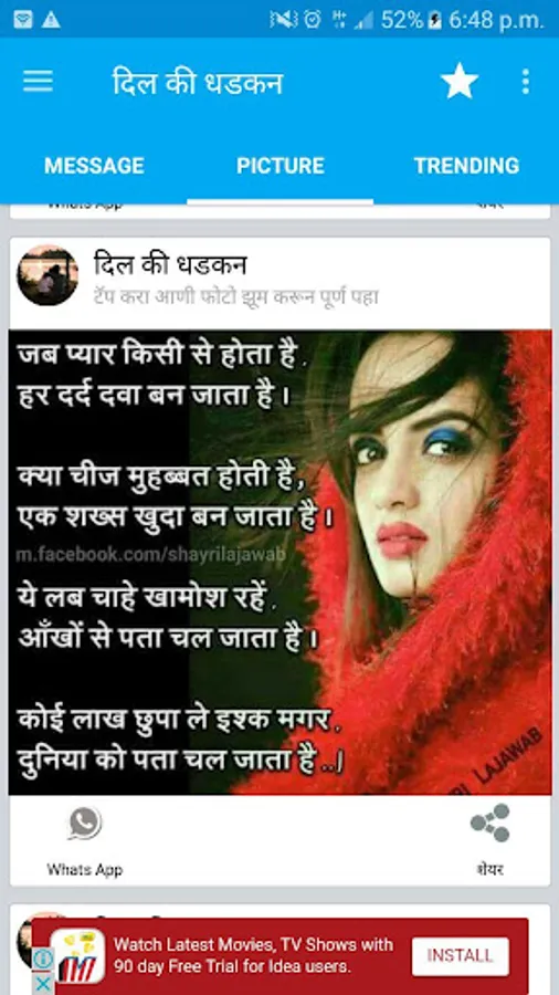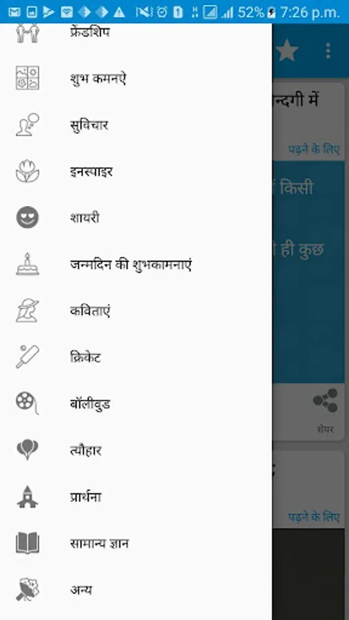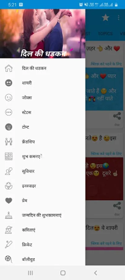 - Shayari in various categories love, break up, sad, mohabbet etc.