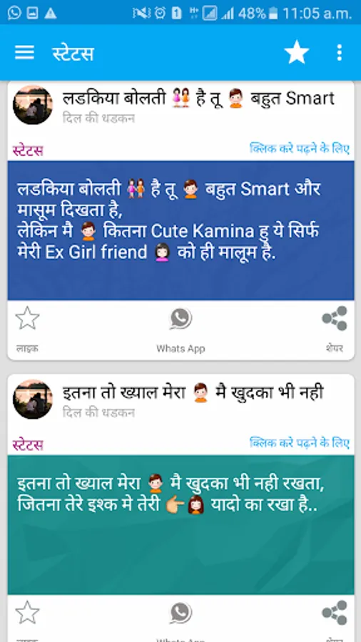 - Hindi Status in different categories attitude, boys, girl status, angry status etc.