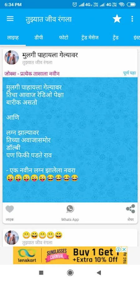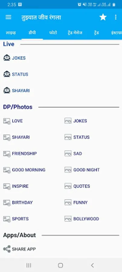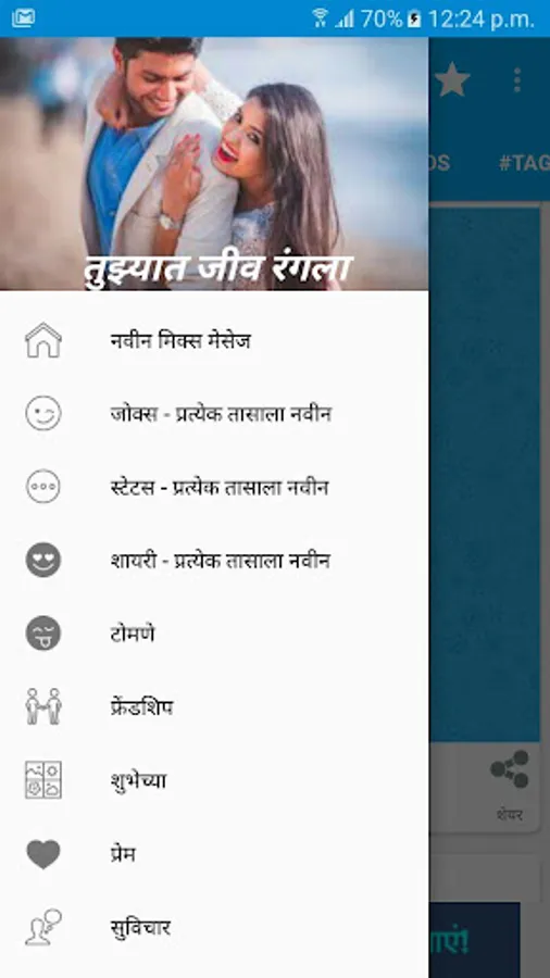 - Tuzyat Jiv Rangala is daily updated marathi jokes app.